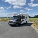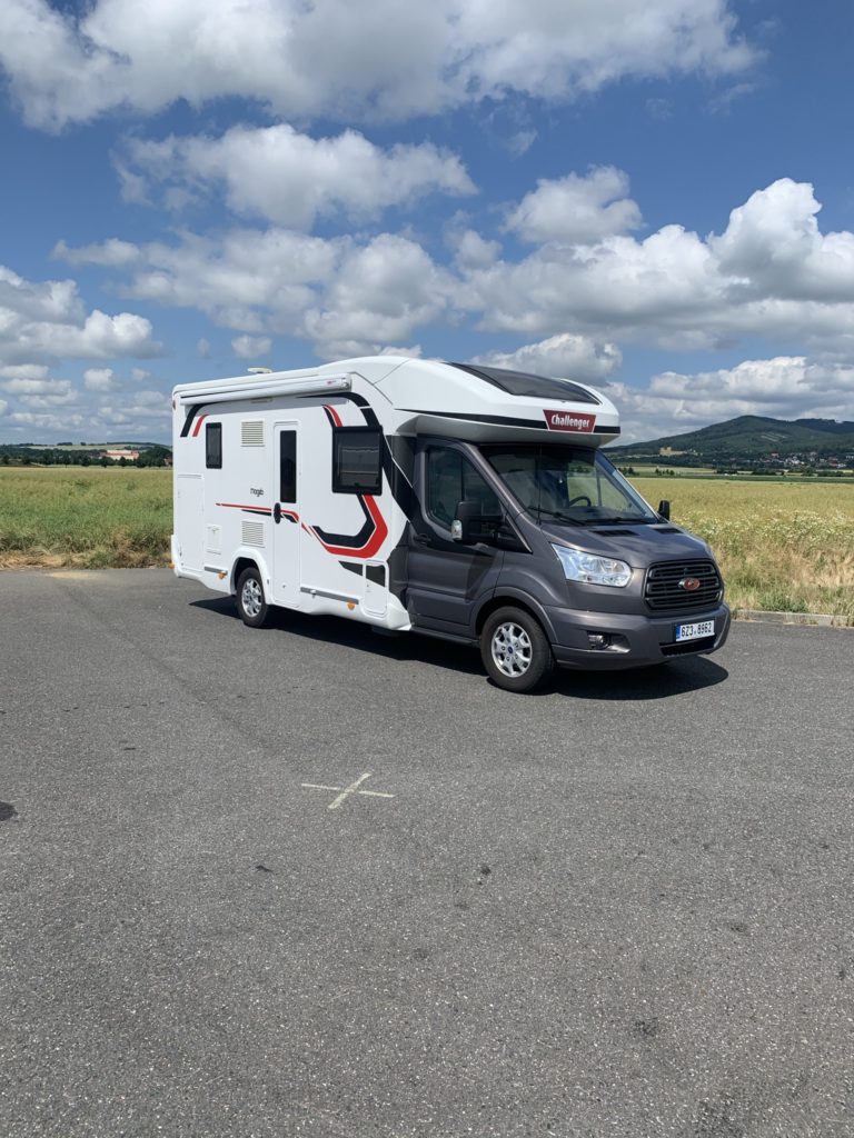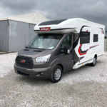 Homologovaný sice pro 4 osoby na jízdu. ale vhodný pro 2 dospělé osoby a max. 1 dítě. Velkorysý obývací prostor s lednicí. Prostorná koupelna.